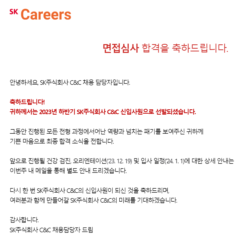 2023년 하반기 SK C&C SW 직무 최종 합격 후기를 작성해보려고 한다.