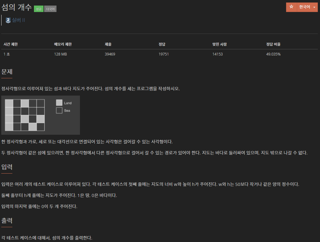 문제 출처 : https://www.acmicpc.net/problem/4963