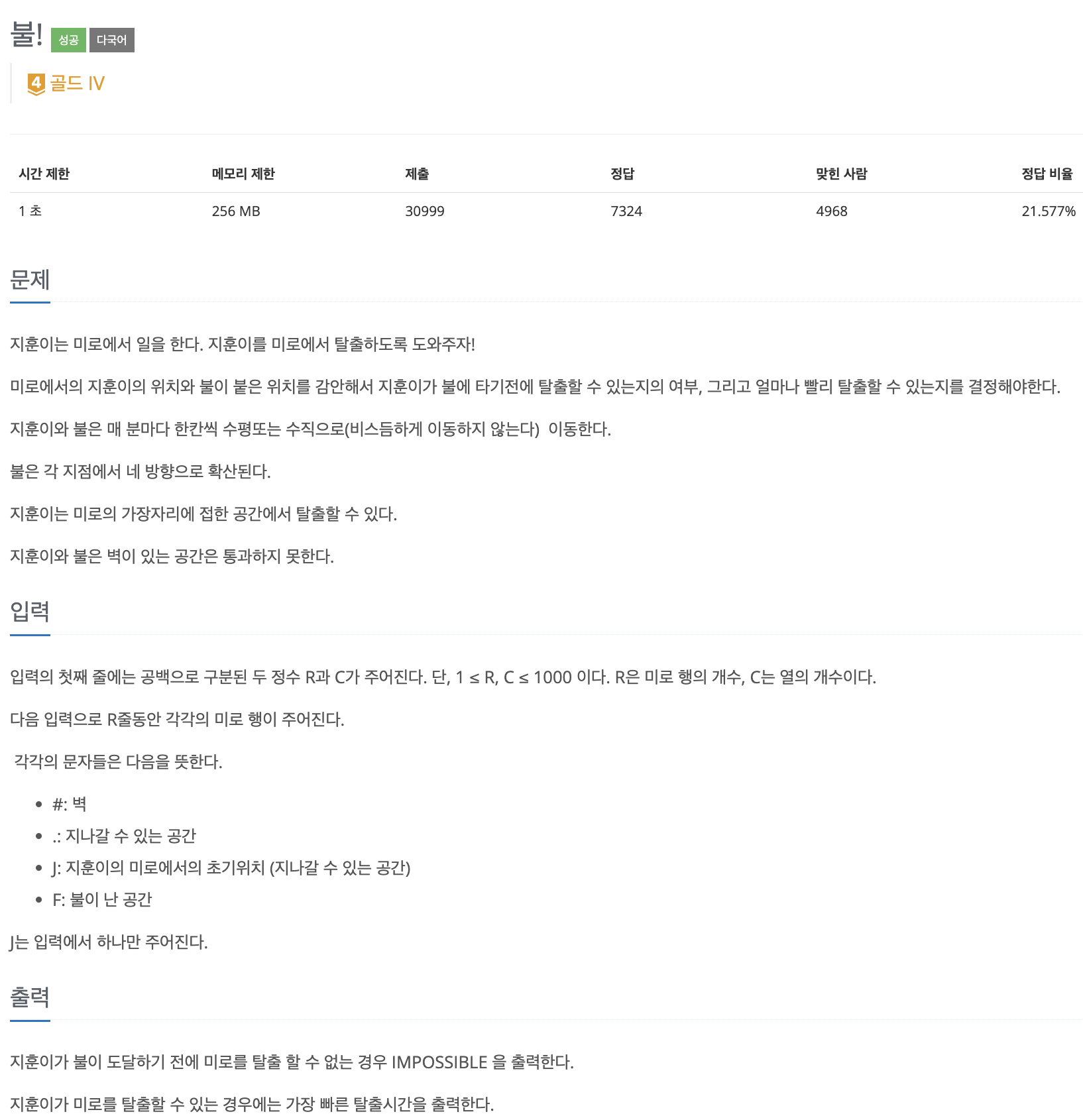 문제 출처 : https://www.acmicpc.net/problem/4179