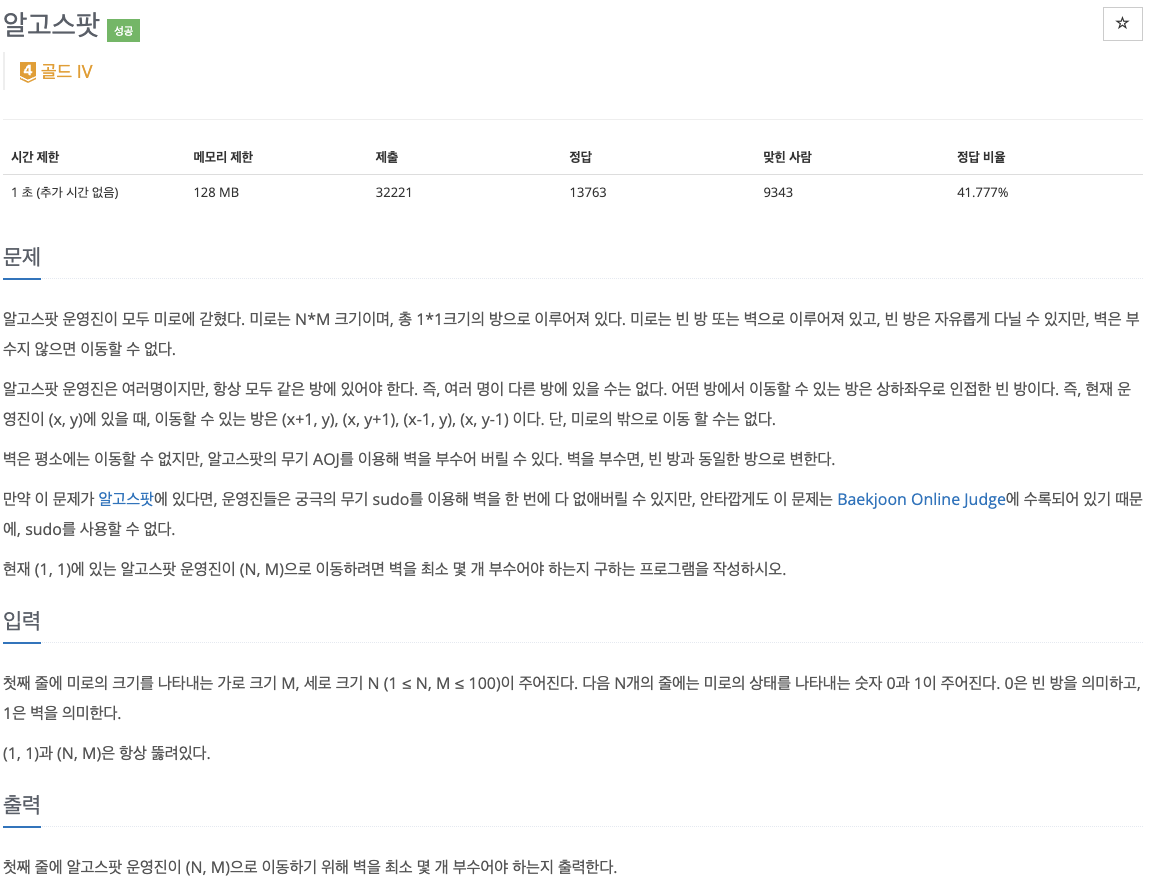 문제 출처 :https://www.acmicpc.net/problem/1261